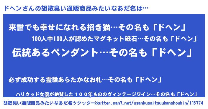 | 意味不明あだ名 | 『とにかく怪しいドヘン』 |
