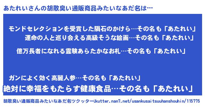 | ヘコむあだ名 | 『あたっふぃ~』『あたれい(笑)』 |