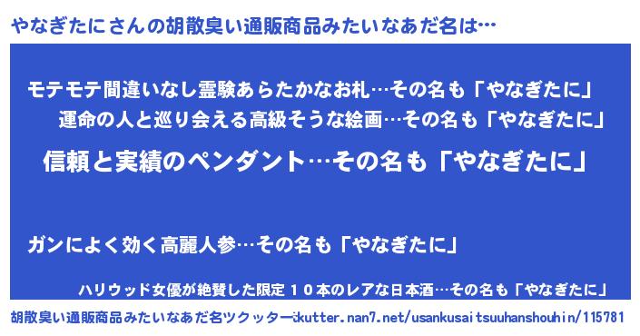 | 伝説のあだ名 | 『孤高の遊び人やなぎたに』 |
