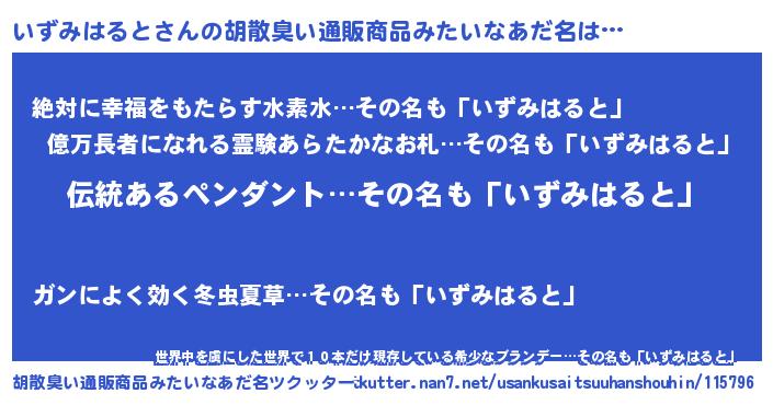 | ヘコむあだ名 | 『いずぷりん』『いずみはると(苦笑)』 |