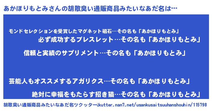 | ヘコむあだ名 | 『あか太郎』『あかほりもとみ(笑)』 |