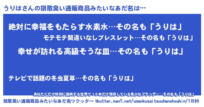 うりはさんの胡散臭い通販商品みたいなあだ名をツクッター!