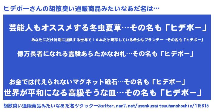 | 意味不明あだ名 | 『ペロリンヒデボー』『自称ヒデボー』 |
