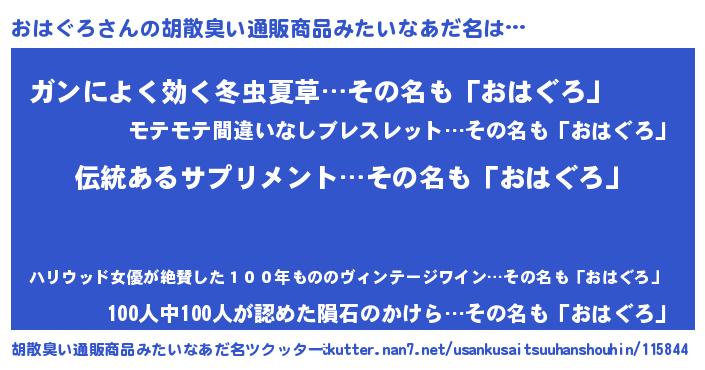 | 意味不明あだ名 | 『とにかく怪しいおはぐろ』 |