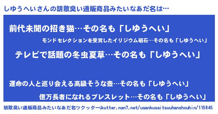 | ヒーロー風カッコイイあだ名 | 『サイバー戦士シユウヘイ』 |