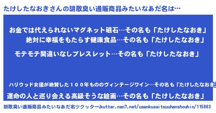 | 意味不明あだ名 | 『たけのこ科たけしたなおき属』 |