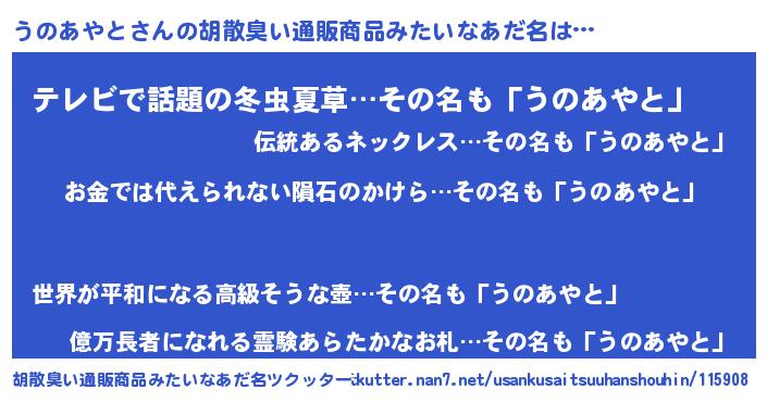ヘコむあだ名 | 『うのもー』『うのっちょ』 |