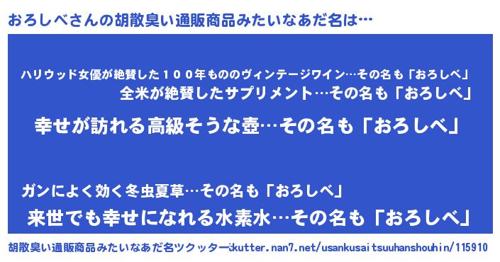 | 意味不明あだ名 | 『おろしべフォーエバー』 |