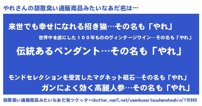 | 意味不明あだ名 | 『とにかく怪しいやれ』『永久保存やれ』 |