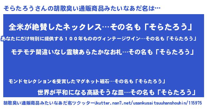 | 意味不明あだ名 | 『ペロリンそらたろう』 |
