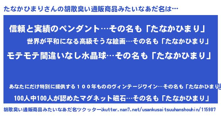 | 欧米人風あだ名 | 『アンジェラ・たなかひまり』 |