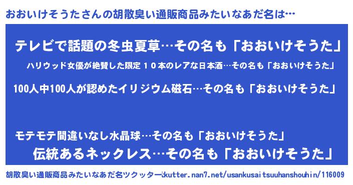 | 欧米人風あだ名 | 『アンジェラ・おおいけそうた』 |