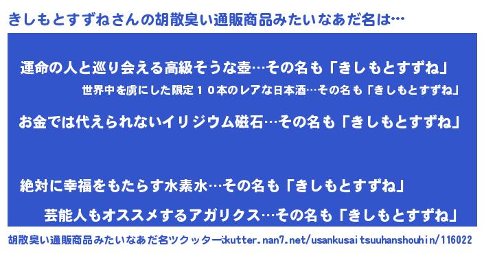 | ヘコむあだ名 | 『豆乳』『きしもとすずね(笑)』 |