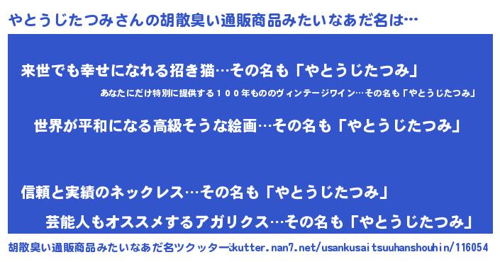 | 肩書あだ名 | 『やとうじたつみ総理大臣』 |