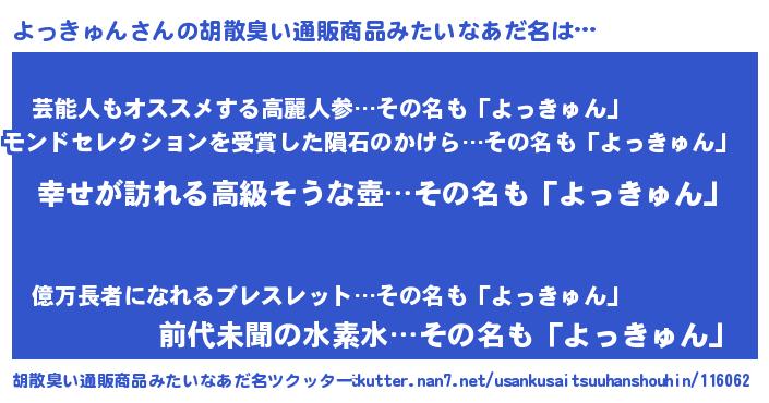 | 伝説のあだ名 | 『秘められし忍者よっきゅん』 |