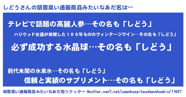 | 意味不明あだ名 | 『ペロリンしどう』『自称しどう』 |