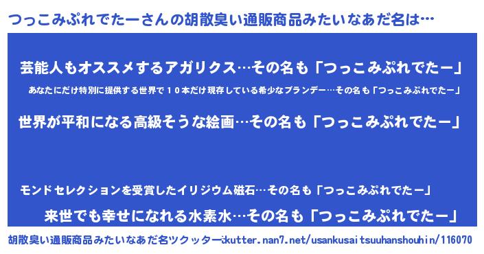 | ヘコむあだ名 | 『なまこ酢』『つっこみぷれでたー(苦笑)』 |