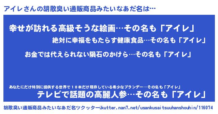 | ヒーロー風カッコイイあだ名 | 『愛の使者アイレ』『ウルトラアイレマン』 |