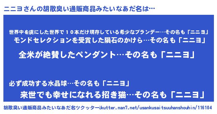 | 意味不明あだ名 | 『とにかく怪しいニニヨ』 |