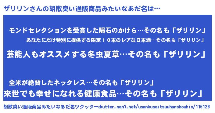 | 意味不明あだ名 | 『自称ザリリン』『永久保存ザリリン』 |