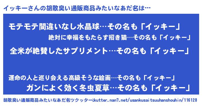 | 意味不明あだ名 | 『とにかく怪しいイッキー』 |