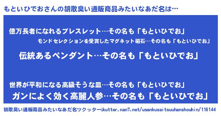 | 意味不明あだ名 | 『とにかく怪しいもといひでお』 |