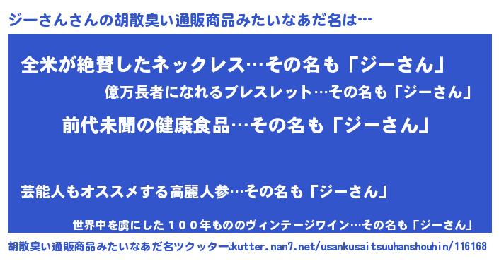 | 意味不明あだ名 | 『永久保存ジーさん』『ペロリンジーさん』 |
