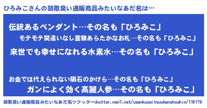 | 意味不明あだ名 | 『永久保存ひろみこ』『自称ひろみこ』 |
