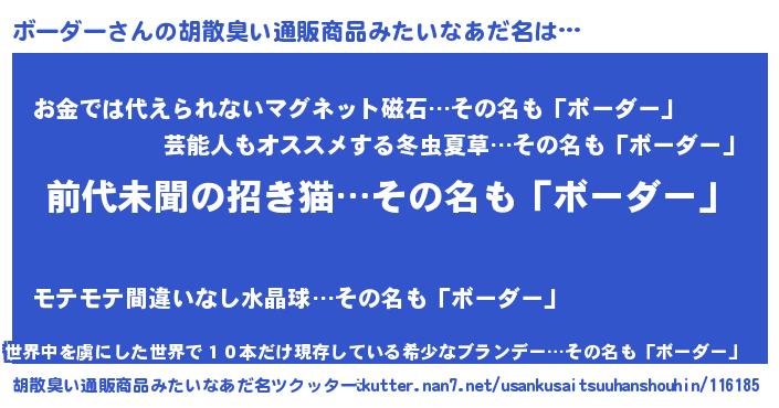 | ヘコむあだ名 | 『ボーダー(笑)』『ボーにー』 |
