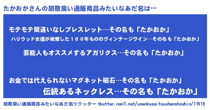 | 男性向けラノベタイトル風あだ名 | 『たかおかに滅ぼされるだけの簡単なお仕事です』 |