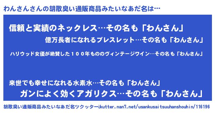 | 恥ずかしいあだ名 | 『ワンリンリン』『ワンサンデラックス』 |