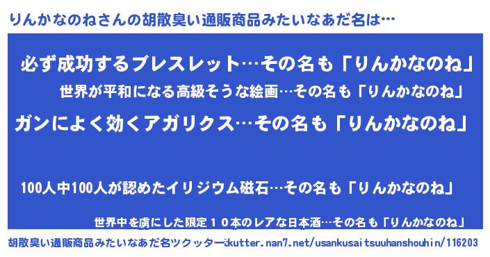 | 意味不明あだ名 | 『自称りんかなのね』 |