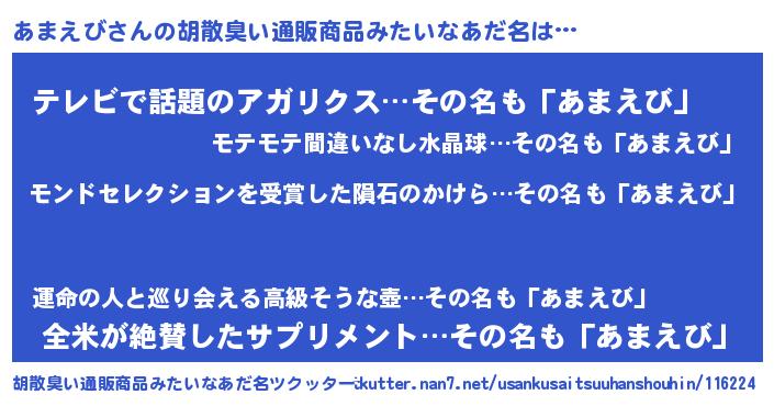 | 男性向けラノベタイトル風あだ名 | 『ノーゲーム・ノーアマエビ』 |