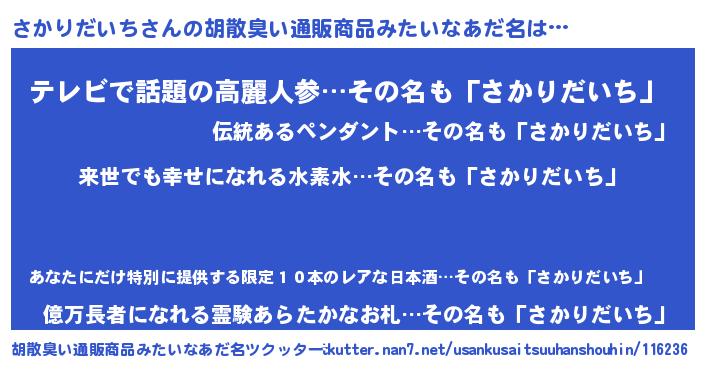 | 意味不明あだ名 | 『永久保存さかりだいち』 |