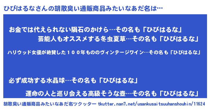 ひびはるなさんの胡散臭い通販商品みたいなあだ名をツクッター!