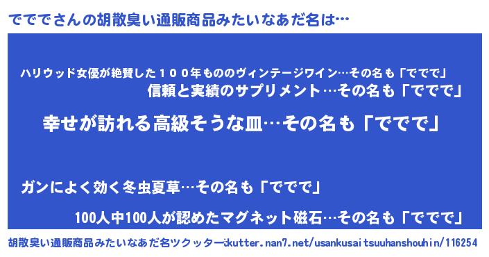 | ヘコむあだ名 | 『つくし』『ででお』『ででで(苦笑)』 |