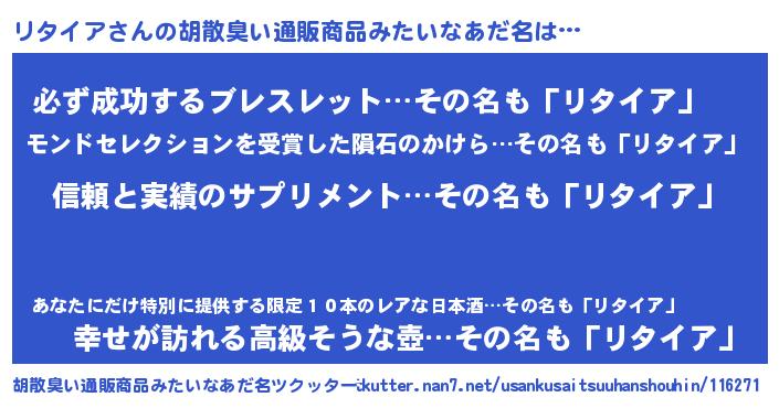 | ポケモン風あだ名 | 『ヒリタイア』『リタゴンZ』 |