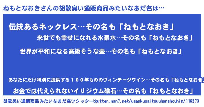 | 欧米人風あだ名 | 『ねもとなおきクリステル』 |