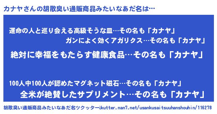 | 意味不明あだ名 | 『永久保存カナヤ』『カナヤフォーエバー』 |