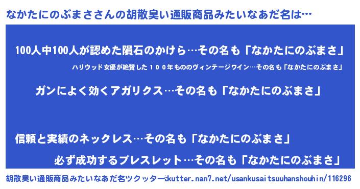 | 意味不明あだ名 | 『自称なかたにのぶまさ』 |