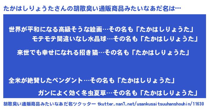 | 意味不明あだ名 | 『永久保存たかはしりょうた』 |