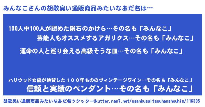 | ヘコむあだ名 | 『酢こんぶ』『みんお』『みんもー』 |