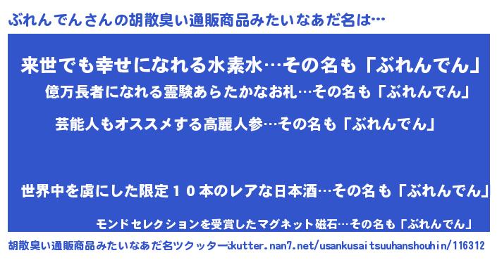 | 意味不明あだ名 | 『自称ぶれんでん』『永久保存ぶれんでん』 |