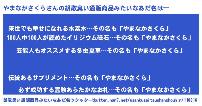 | ヘコむあだ名 | 『やまなかさくら(震え声)』『やまにゅー』 |
