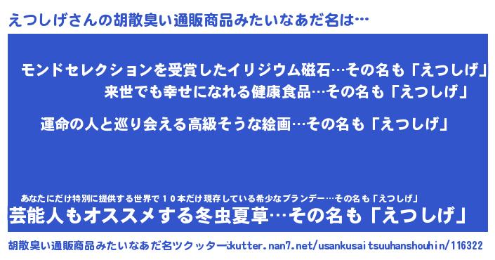 | 欧米人風あだ名 | 『えつしげクリステル』 |