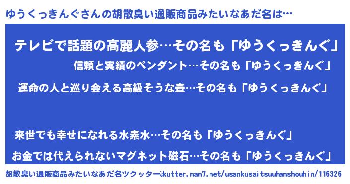 | ポケモン風あだ名 | 『ユウキング』『ユウクダネ』 |