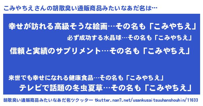 | 意味不明あだ名 | 『とにかく怪しいこみやちえ』 |