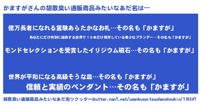 | 男性向けラノベタイトル風あだ名 | 『ノーゲーム・ノーカマスガ』 |