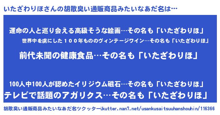 | 肩書あだ名 | 『いたざわりほ校長』『いたざわりほ総統』 |