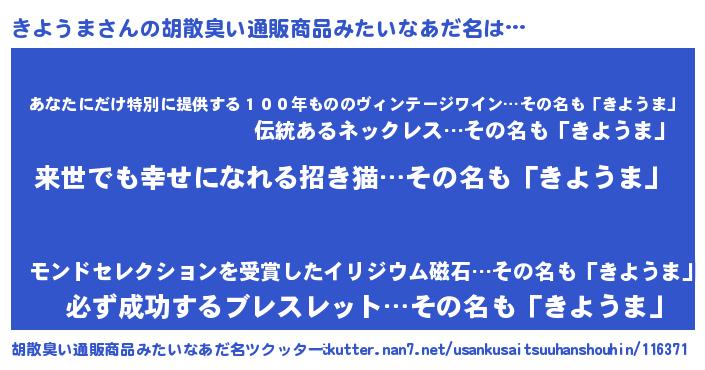 | 男性向けラノベタイトル風あだ名 | 『きようまという概念が存在しない退屈な世界 』 |